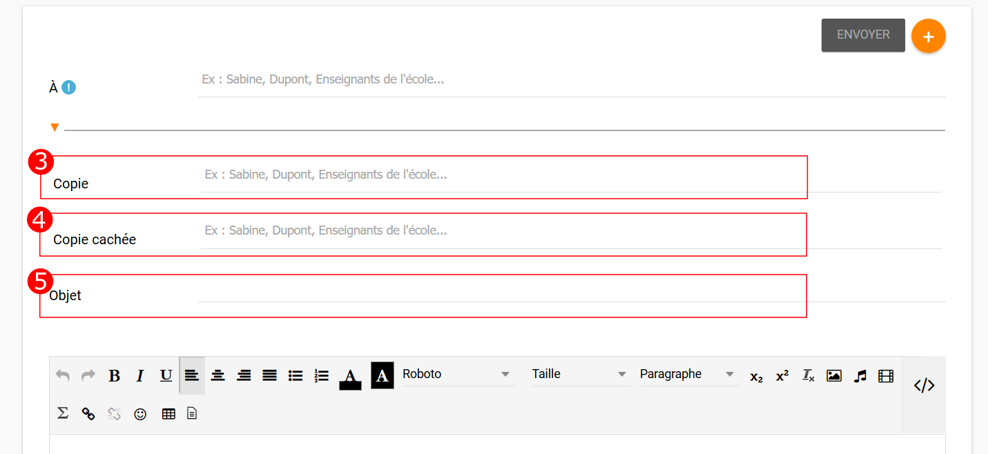 2. En cliquant sur la flèche, vous avez accès à la saisie des destinataires en **copie** du message.